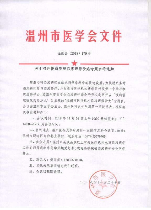 关于召开慢病管理临床药师沙龙专题会的通知