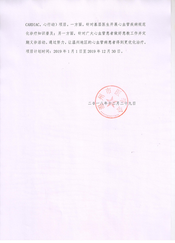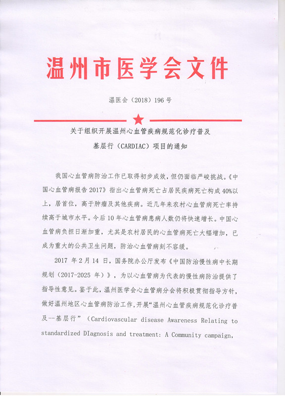 关于组织开展温州心血管疾病规范化诊疗普及基层行(CARDIAC)项目的通知