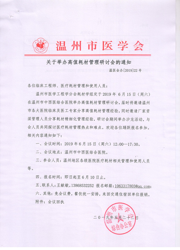 关于举办高值耗材管理研讨会的通知