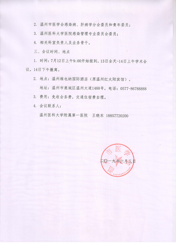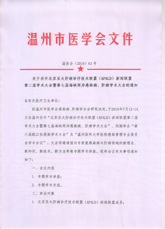 关于召开北京亚太肝病诊疗技术联盟(APALD)浙闽联盟第二届学术大会暨第七届海峡两岸感染病、肝病学术大会的通知