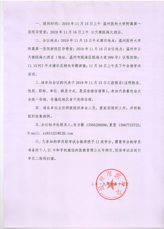 关于举办《2019瓯江心脏病实践》暨市级继教项目《急性冠脉综合征的治疗进展》的通知