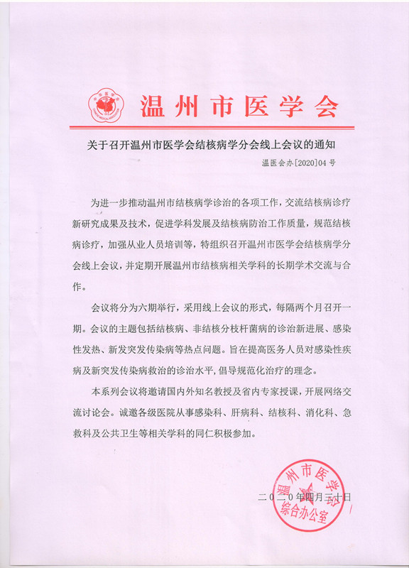 关于召开温州市医学会结核病学分会线上会议的通知
