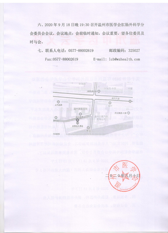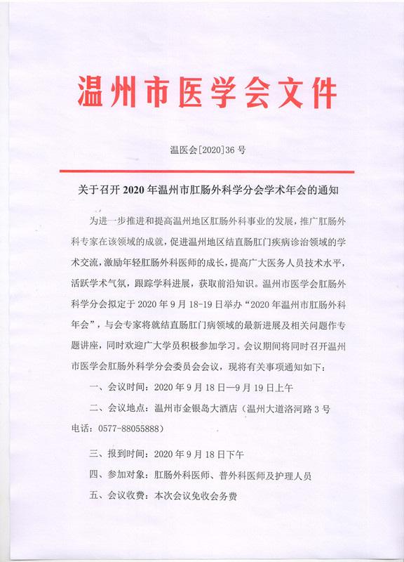 关于召开2020年温州市肛肠外科学分会学术年会的通知