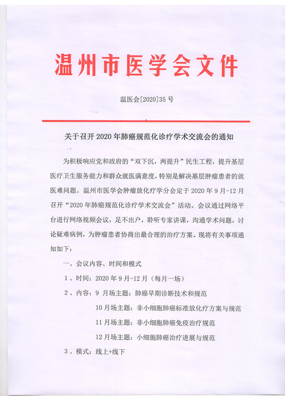 关于召开2020年肺癌规范化诊疗学术交流会的通知