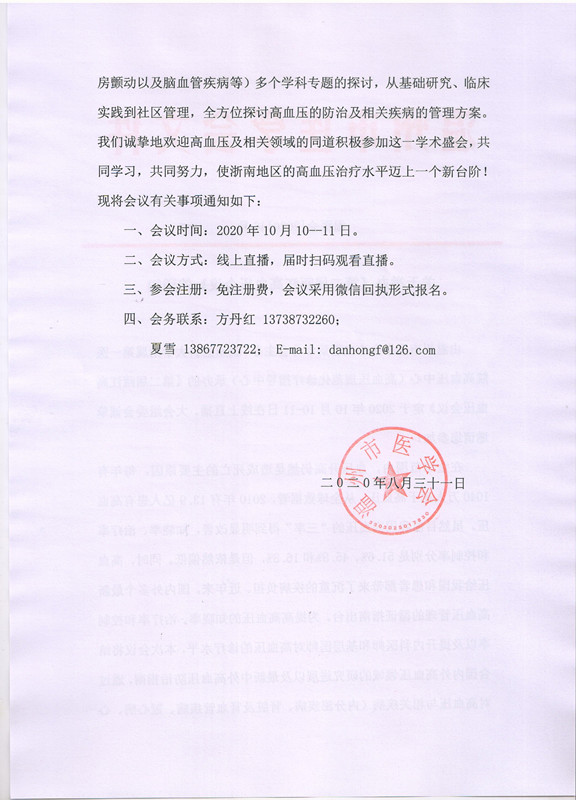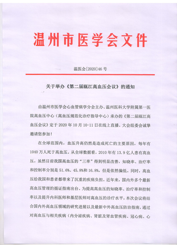 关于举办《第二届瓯江高血压会议》的通知