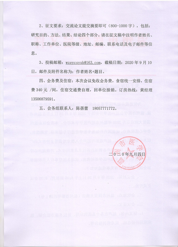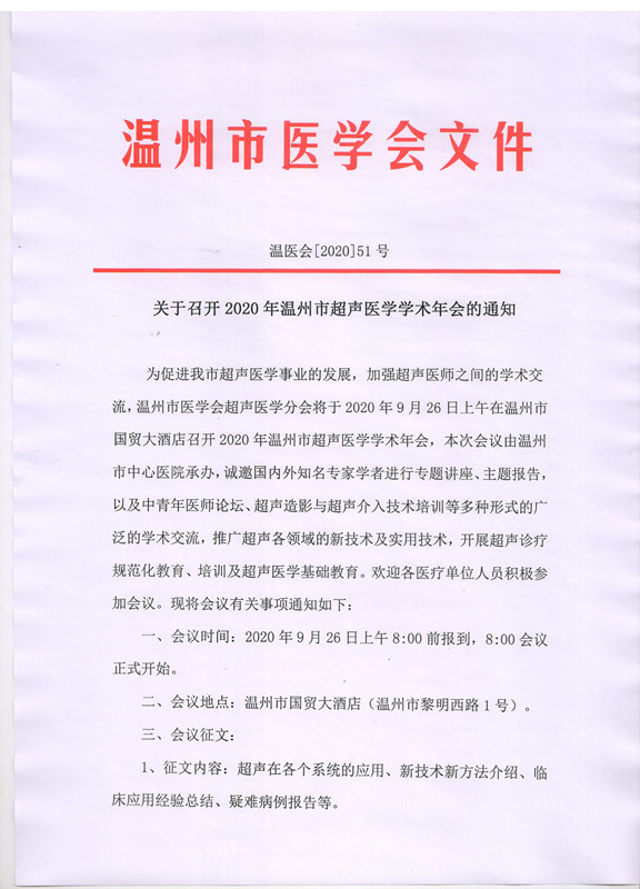 关于召开2020年温州市超声医学学术年会的通知