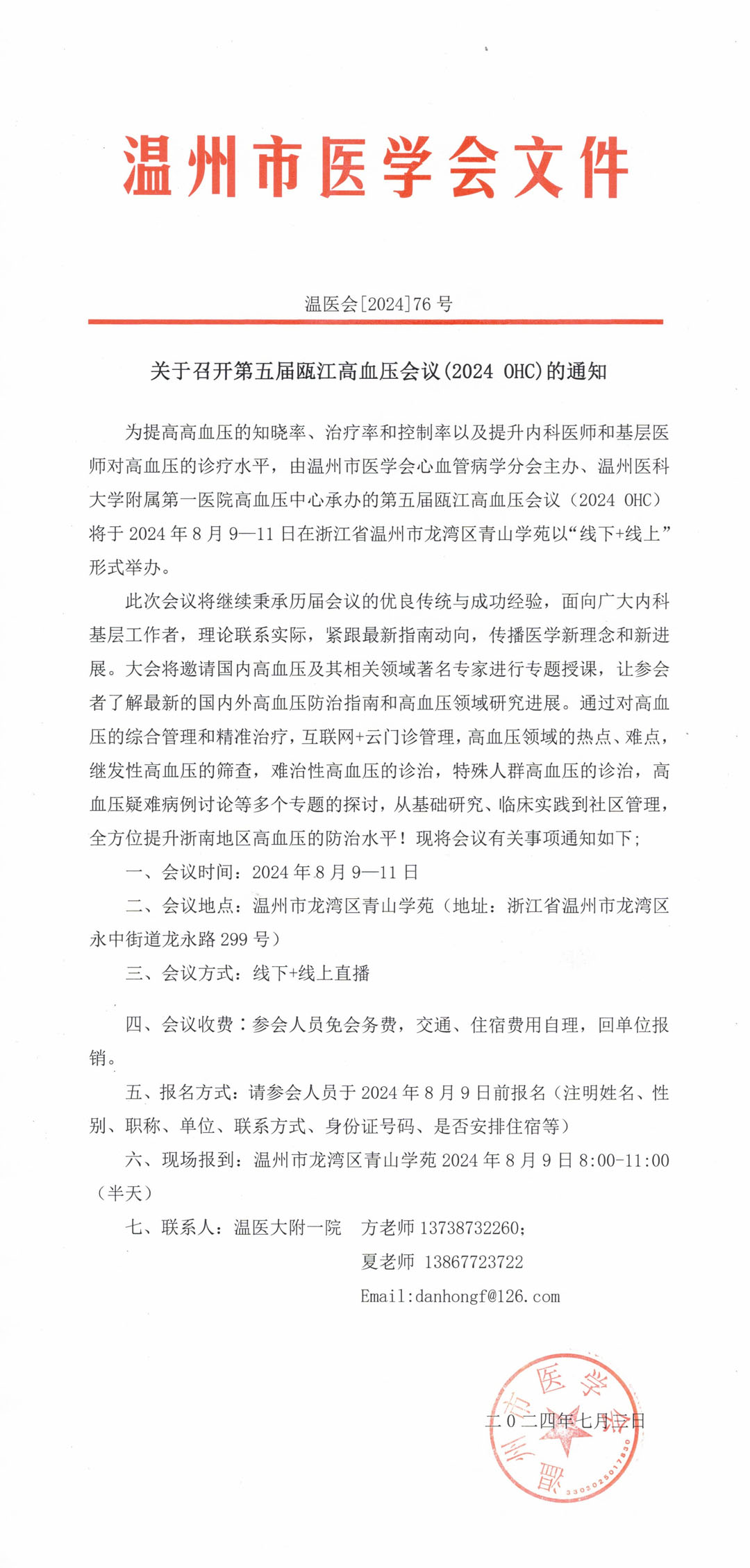 关于召开第五届瓯江高血压会议(2024 OHC)的通知