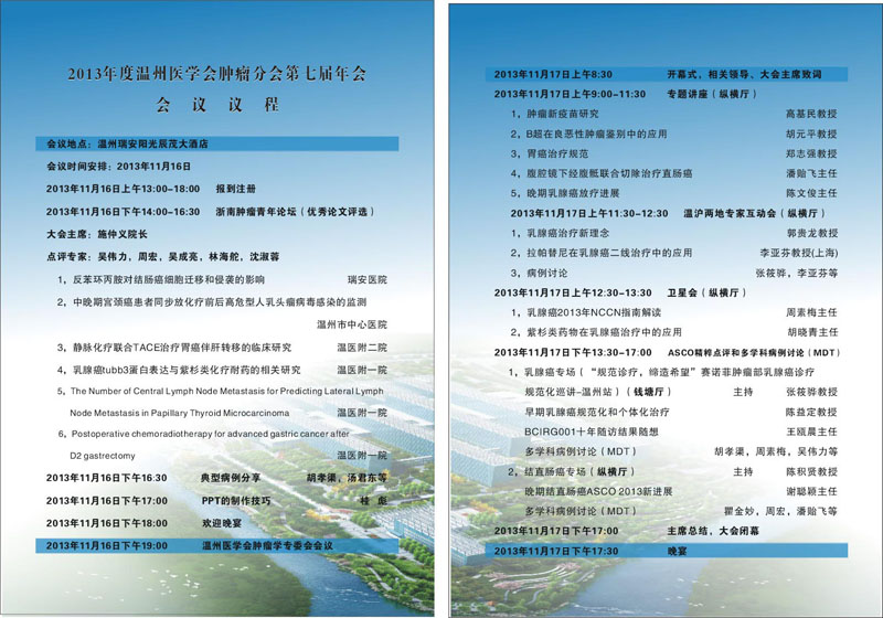 2013年度温州市医学会肿瘤分会第七届年会会议议程