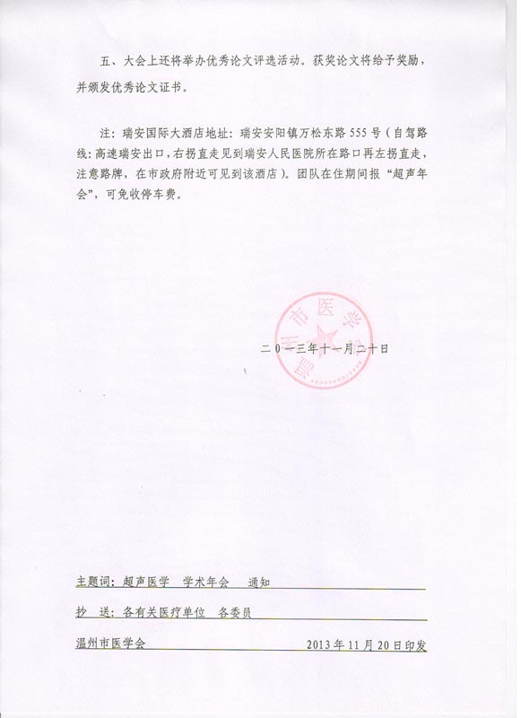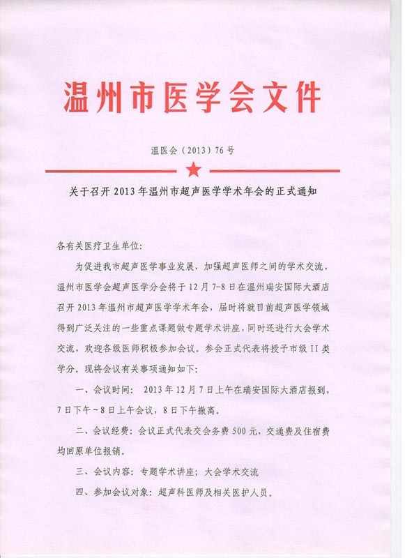 关于召开2013年温州市超声医学学术年会的正式通知