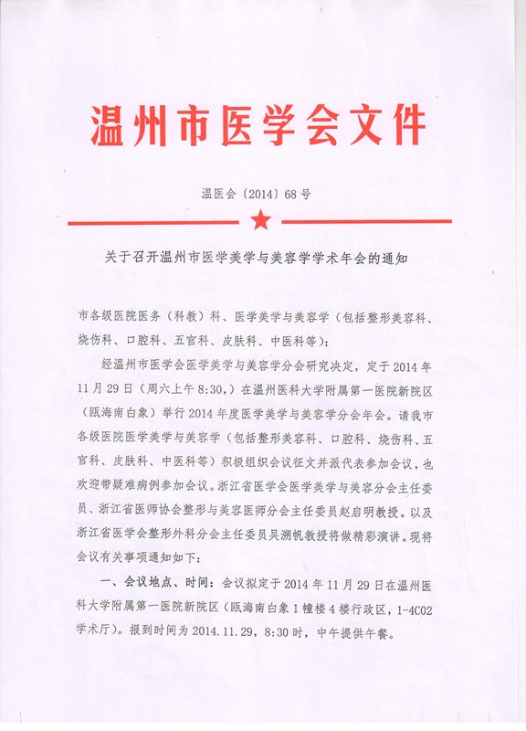 关于召开温州市医学美学与美容学学术年会的通知