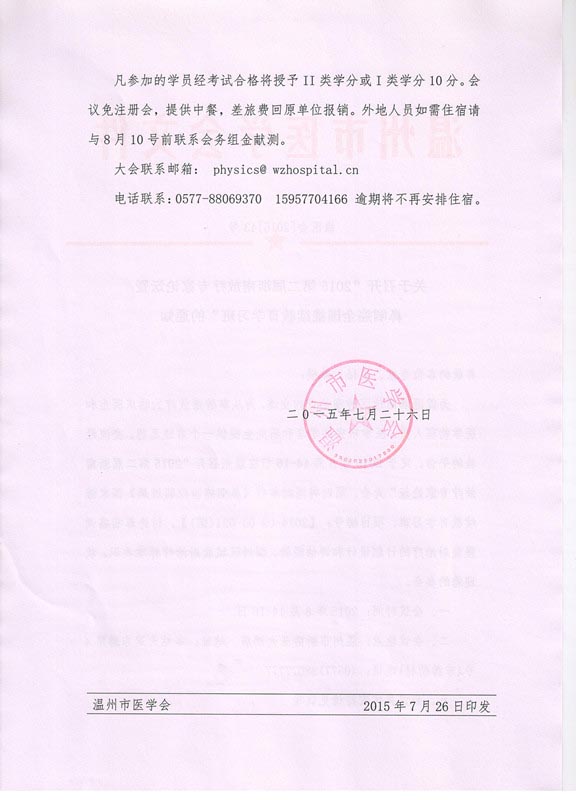 关于召开“2015第二届浙南放疗专家论坛暨鼻咽癌全国继续教育学习班”的通知