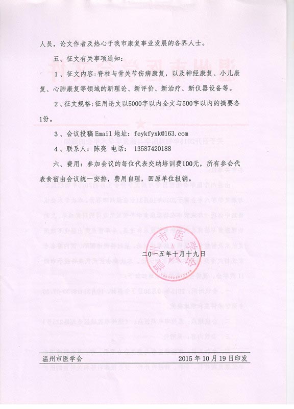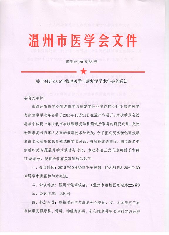 关于召开2015年物理医学与康复学学术年会的通知