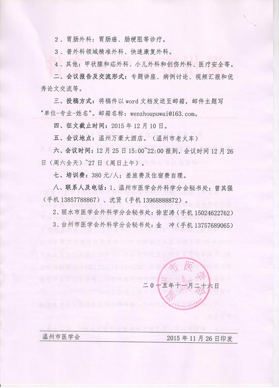 关于召开2015年度温丽台普外科学术研讨会暨三地年会及国家级继续医学教育项目《肝硬化门脉高压症及其并发症的诊治新进展》学习班的正式通知