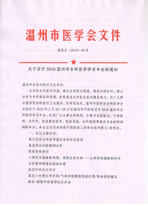 关于召开2016温州市全科医学学术年会的通知