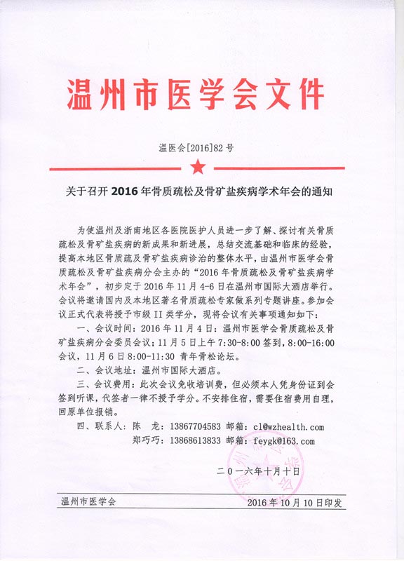 关于召开2016年骨质疏松及骨矿盐疾病学术年会的通知