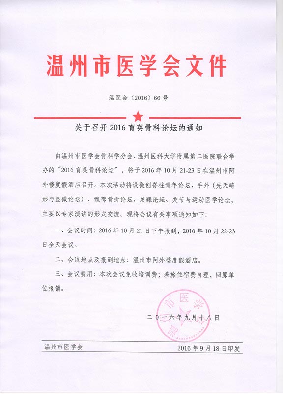关于召开2016育英骨科论坛的通知