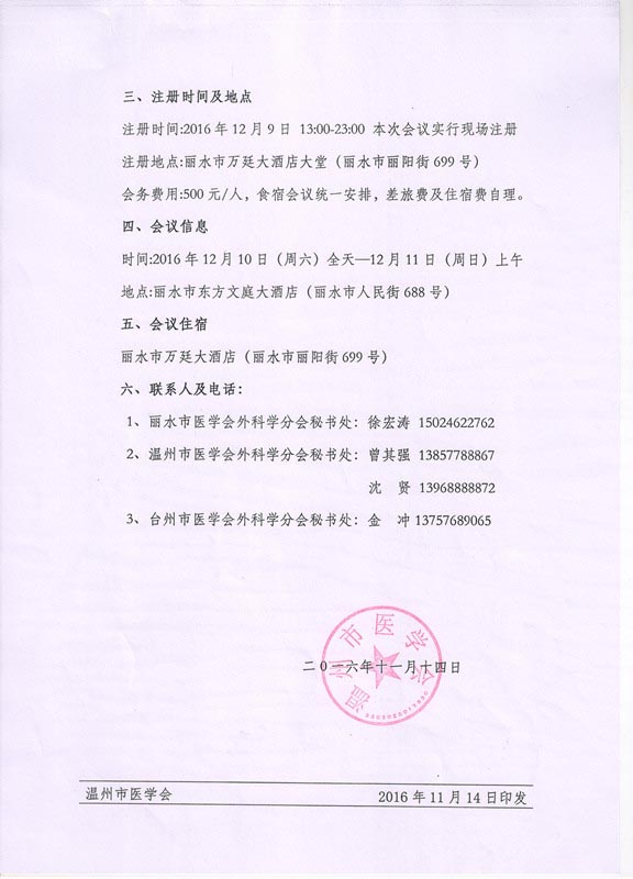 关于召开2016年度温丽台三地联合普外科年会的通知