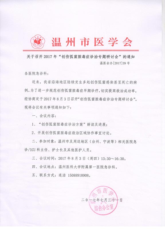 关于召开2017年“创伤弧菌脓毒症诊治专题研讨会”的通知