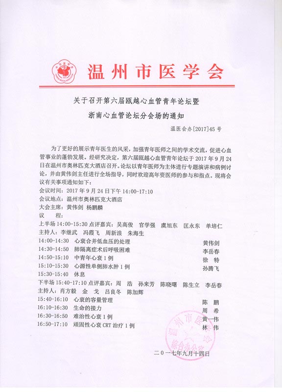 关于召开第六届瓯越心血管青年论坛暨浙南心血管论坛分会场的通知