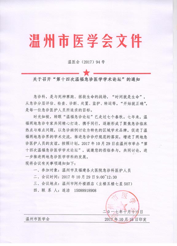关于召开“第十四次温福急诊医学学术论坛”的通知