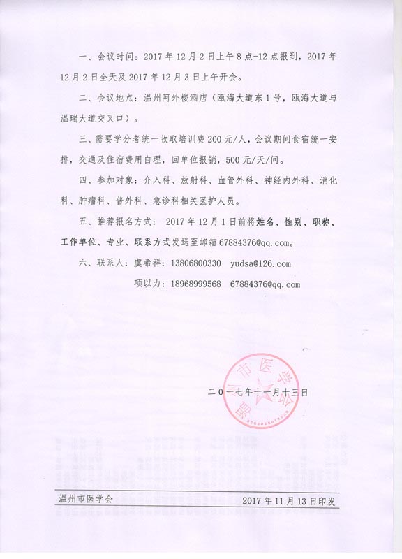 关于召开温州市医学会介入医学分会成立大会暨国家级继续教育项目-急性脑卒中支架取栓高峰论坛的通知