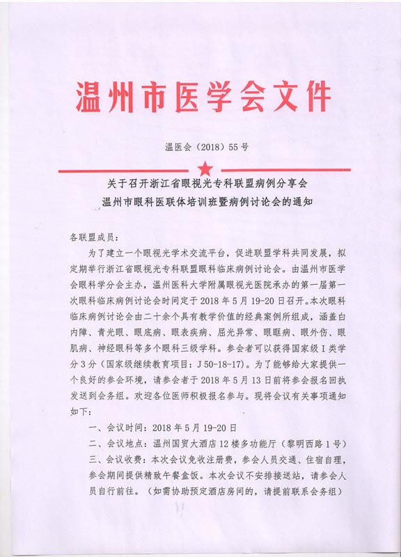 关于召开浙江省眼视光专科联盟病例分享会温州市眼科医联体培训班暨病例讨论会的通知
