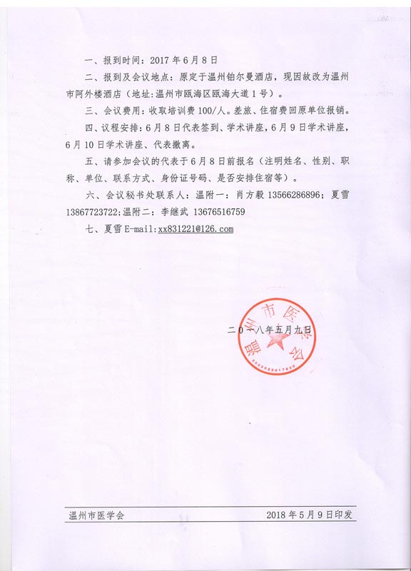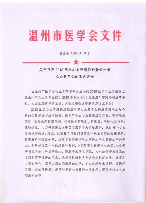 关于召开2018瓯江心血管病论坛暨温州市心血管年会的正式通知