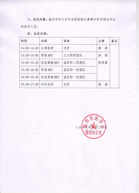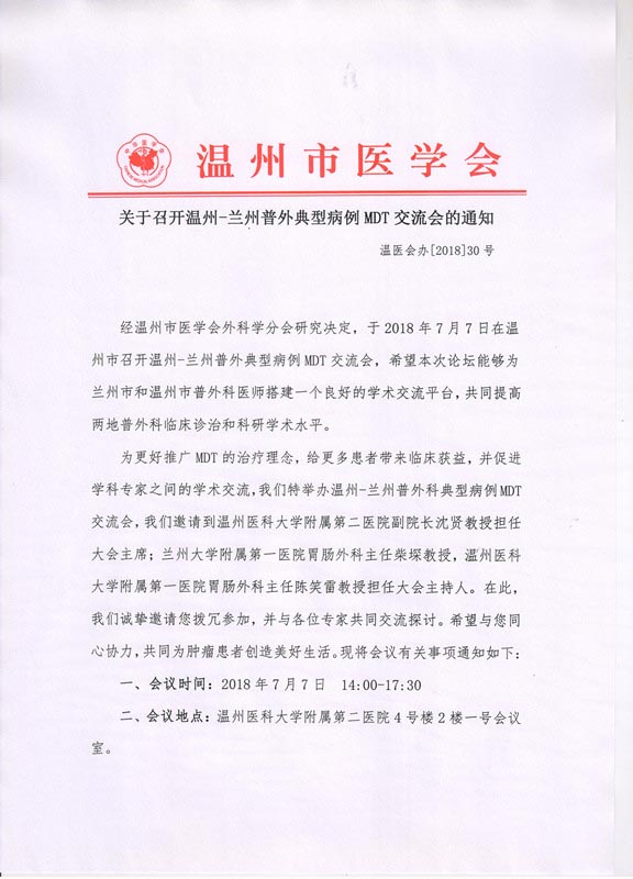 关于召开温州-兰州普外典型病例MDT交流会的通知