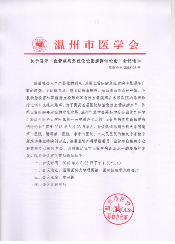 关于召开“血管疾病急症论坛暨病例讨论会”会议通知