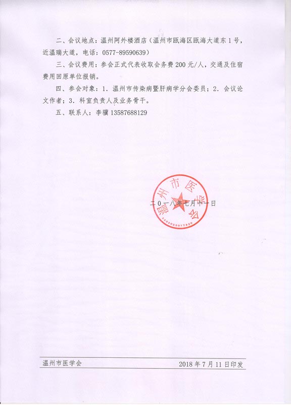 关于召开中国研究型医院学会肝病学分会第二届病毒性肝炎学术会议和浙江省中西医结合学会热带病与寄生虫病分会成立大会暨2018年温州市感染病、肝病学术年会和第六届海峡两岸感染病、肝病高峰论坛的通知