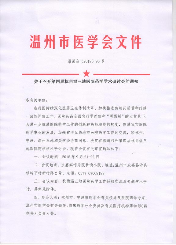 关于召开第四届杭甬温三地医院药学学术研讨会的通知