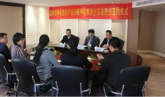 借着此次会议的契机,会上还举行了聘任黄涛生教授为温州市中心医院产前诊断中心客座教授签约仪式。黄涛生教授与我院合作已达十余年之久,不仅为我们产前诊断中心做了大量的指导工作,同时也见证了我们产前诊断中心的成长。温州市产前诊断中心是由浙江省卫计委授权、温州市卫计委批准建立的产前诊断中心,是市出生缺陷重点实验室。该中心产前诊断项目和种类居全省前列,为提高人口的优生优育工作发挥积极的作用。作为重点实验室,承担省部、厅、市等科研项目,累计发表SCI 8篇。2017年,该中心获省、市科技进步二等奖各一项,是目前市级单位拿到的最高奖项。此次与黄教授再一次建立合作关系将为我院临床医学,基因诊断和转化医学的发展带来希望,为我院医疗科研工作者带来更进一步的机会,接触到更权威的学术信息,相信在不久的将来我院将会创造出更多的成绩!