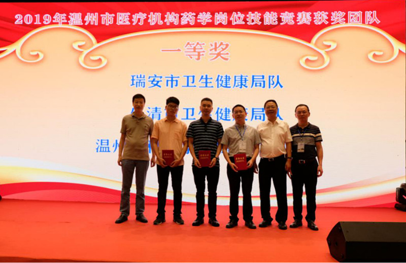 学术报告前,对2019年7月11日举办的“2019年温州市医疗机构药学岗位技能竞赛”获奖的团体及个人进行表彰。温州市卫生健康委员会工会工作委员会周峰主任、温州市医学会办公室王爱华主任、临床药学分会张秀华主任委员及分会其他委员为获奖的团体及个人进行了颁奖。