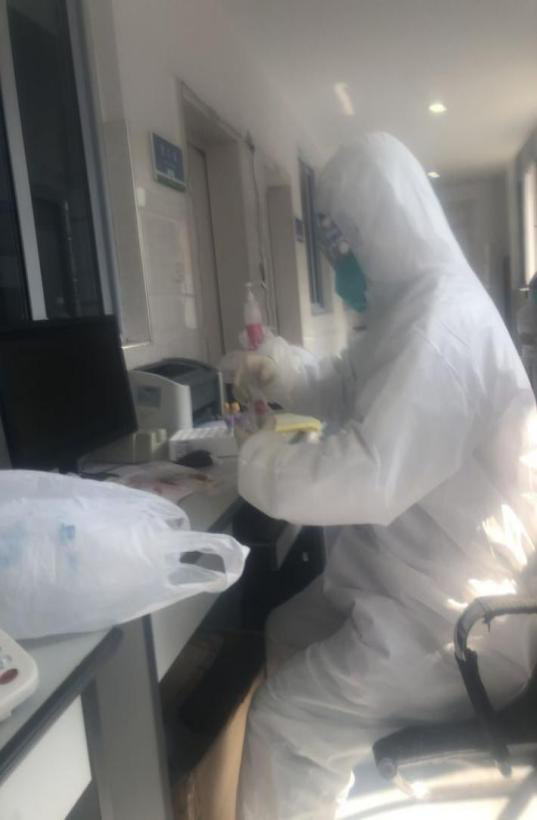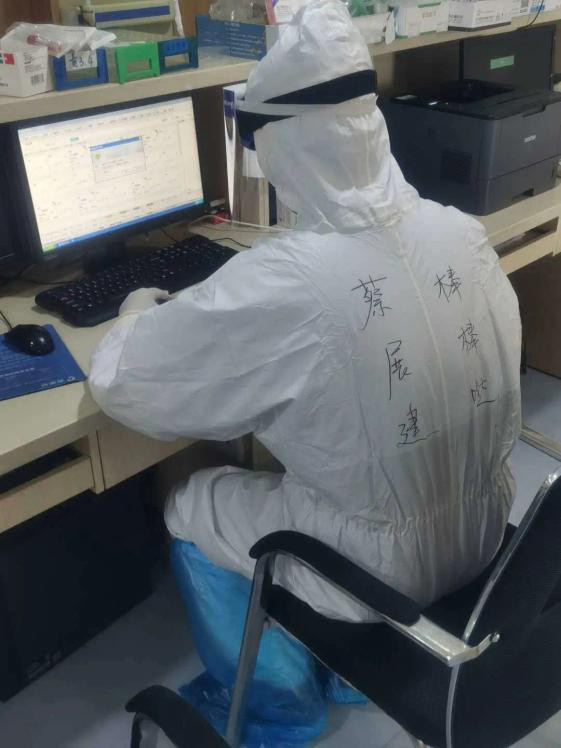 县人民医院外科医生蔡展建的爱人是感染科主治医师姚冉,疫情发生后,姚冉作为第一批队员第一时间参与了发热门诊坐诊,此后陆续参与了隔离点采样、疫点医疗救治队等一线救治。作为她的同事和爱人,蔡展建承诺会照顾好家庭做好后勤保障,但是身为一名医生,他始终抑制不住职业的使命感,在医院发出号召要求外科系统支援时,他第一时间义无反顾报了名。医院出于人文关怀,没有予以安排。此后,他又多次申请,因为人员确实紧张,医院最终同意了。他说:“我的双亲年老体弱,父亲患有肺气肿,母亲去年刚刚做了肺部肿瘤手术,我的女儿4岁,儿子才2岁,但是这些我都‘自私’地放在一边,作为一名医生这一战我不想缺席”。投入一线后,他先后参与确诊病例转送、隔离病房救治、集中隔离点咽拭子采样等救治工作。疫情严峻,医疗物资不足,为了节约一套防护服,一天下来汗流浃背,不敢喝水,憋着不上厕所,虽然辛苦但他从不抱怨,他表示既然报名进入一线,这些就不是他退缩的理由。