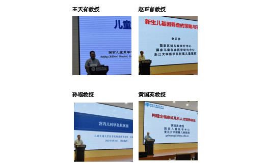 24日下午举行了主旨论坛,分别邀请了中华医学会儿科分会主任委员王天有教授、中华医学会儿科分会前任主任委员赵正言教授、中华医学会儿科分会候任主任委员孙锟教授及中华医学会儿科分会副主任委员黄国英教授做了大会报告,围绕儿童安全用药、新生儿基因筛查、宫内儿科学及儿科人才培养等方面进行了交流。