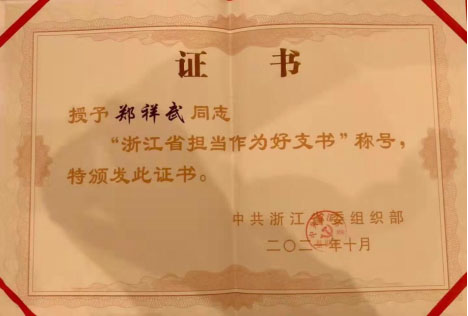 在刚刚召开的“全省基层党建工作会议“上,为了进一步树立标杆、弘扬先进,激励全省基层党组织和党员干部在新征程上继续奋斗、勇争一流,浙江省委组织部决定授予一批基层党支部书记为”担当作为好支书“。温州市医学会常务理事、放射学分会主任委员、温州医科大学附属第一医院放射影像支部书记、放射科主任郑祥武教授喜获该项殊荣。