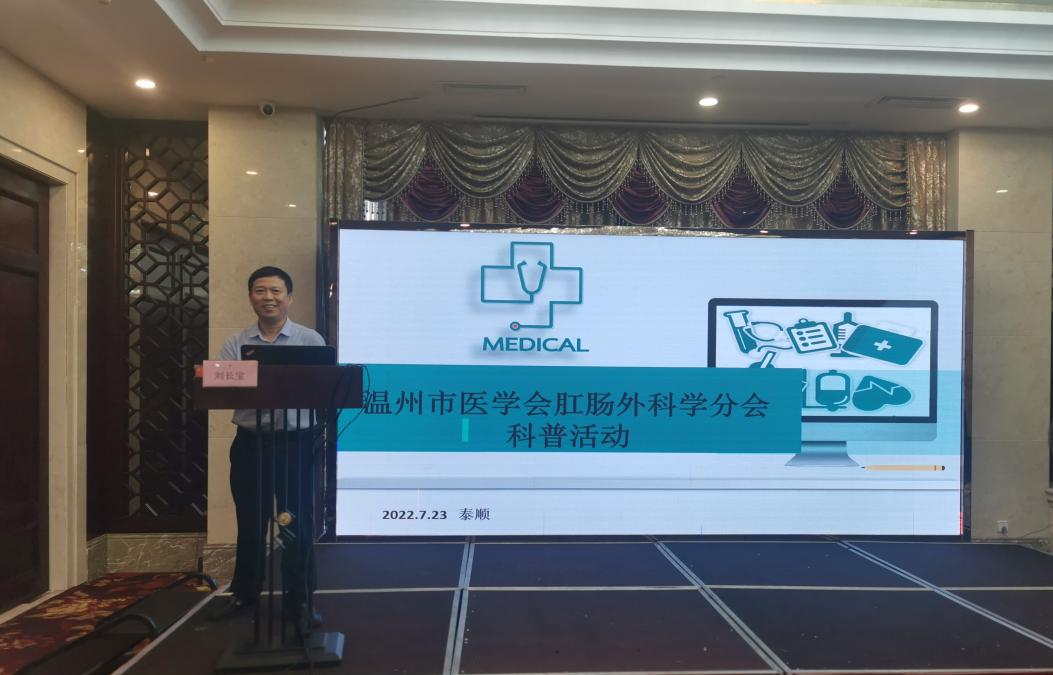2022年7月23日,温州市医学会肛肠外科学分会“科普讲座进基层”活动在美丽的廊桥之乡泰顺隆重举行。本次会议由温州医学会肛肠外科学分会刘长宝主任委员担任活动主席,分会全体委员、泰顺县人民医院相关医护人员参加了本次活动。