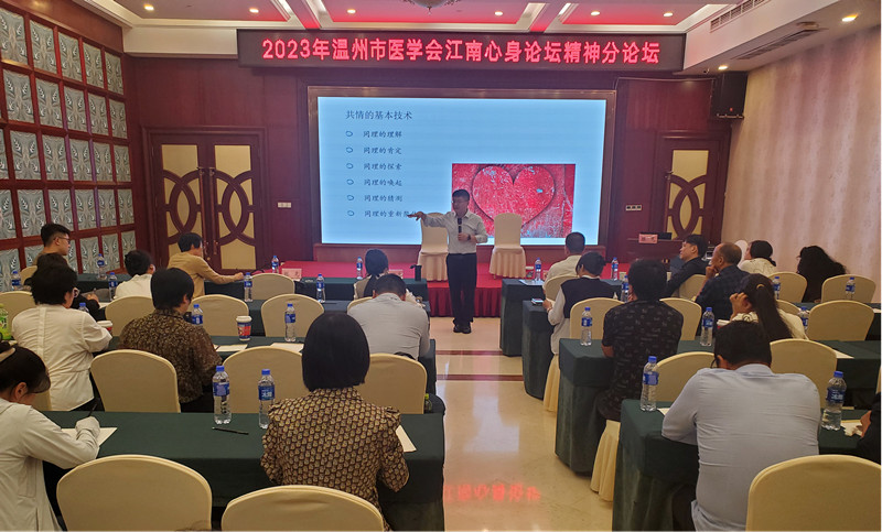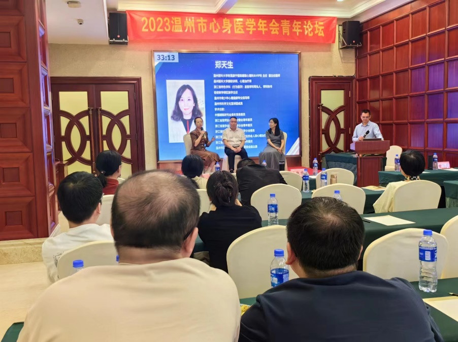 2023年11月4日,温州市医学会心身医学专业委员会学术年会暨第七届江南心身研讨会在温州金银岛大酒店酒店隆重举行。会议由林燕副主委主持,何金彩主委在开场致辞中强调,在后疫情时代,心身疾病需要精准识别和治疗。温州市医学会王良兴副会长莅临此次大会,结合自身临床经历,畅谈心身疗愈,同时也高度评价了心身分会学术活动的形式和价值。今年学术会议邀请国家引才计划入选者,瓯江实验室双聘教授陈江帆教授讲座。陈教授结合个人研究方领域,就腺苷A2A受体治疗神经退行性疾病做主题报告。何金彩主委、叶敏捷、林崇光和陈晓曙等副主委围绕后疫情时代的心身问题干预、阿尔茨海默病的早期防治与心身疾病和双心疾病的诊疗等专题为200余位与会者开展深入浅出的讲座。