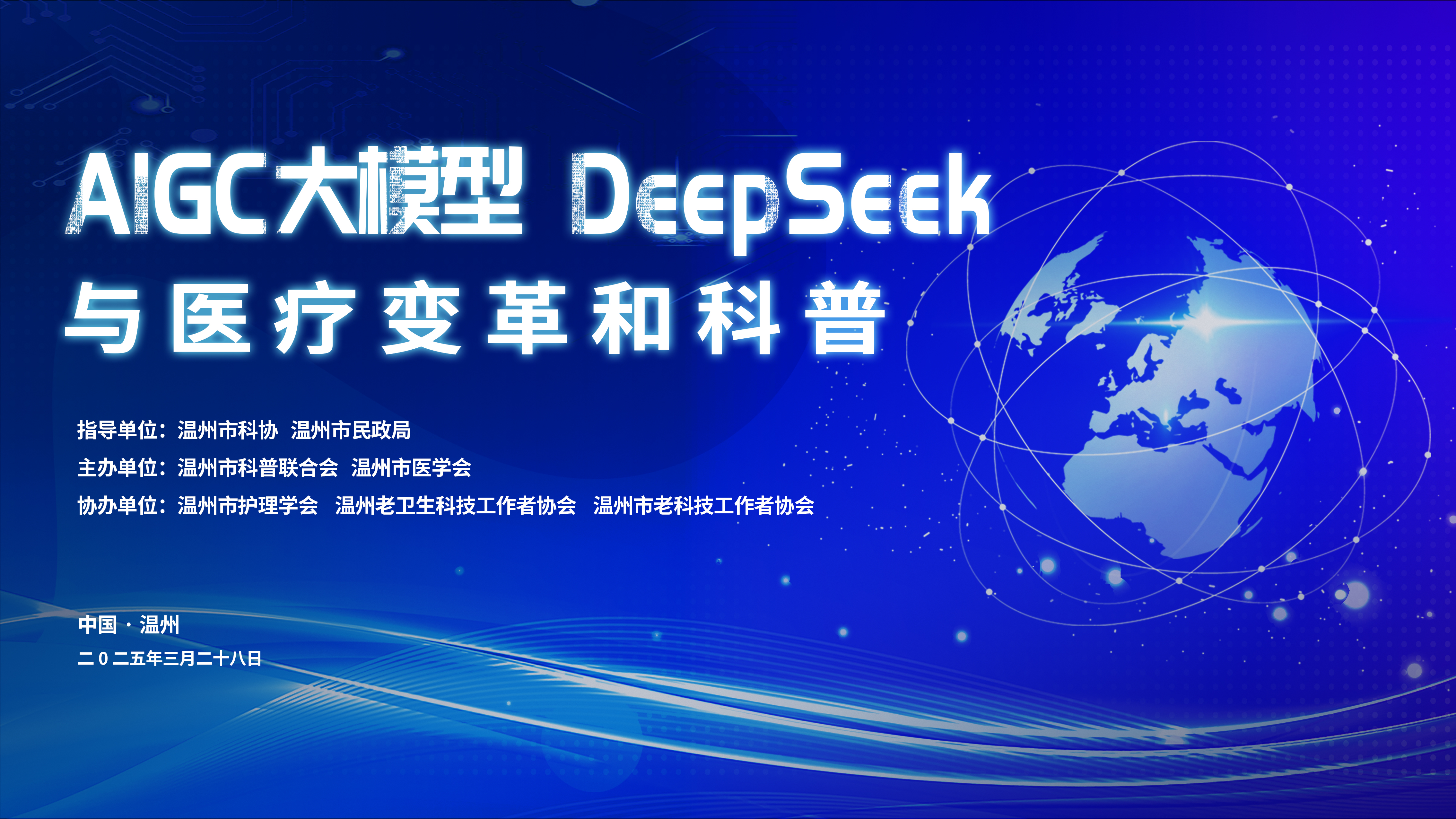 2025年3月28日下午,温州市医学会联合温州市科普联合会主办“AIGC大模型、DeepSeek与医疗变革和科普”公益讲座在温州医科大学学院路校区育英学术馆隆重召开。
