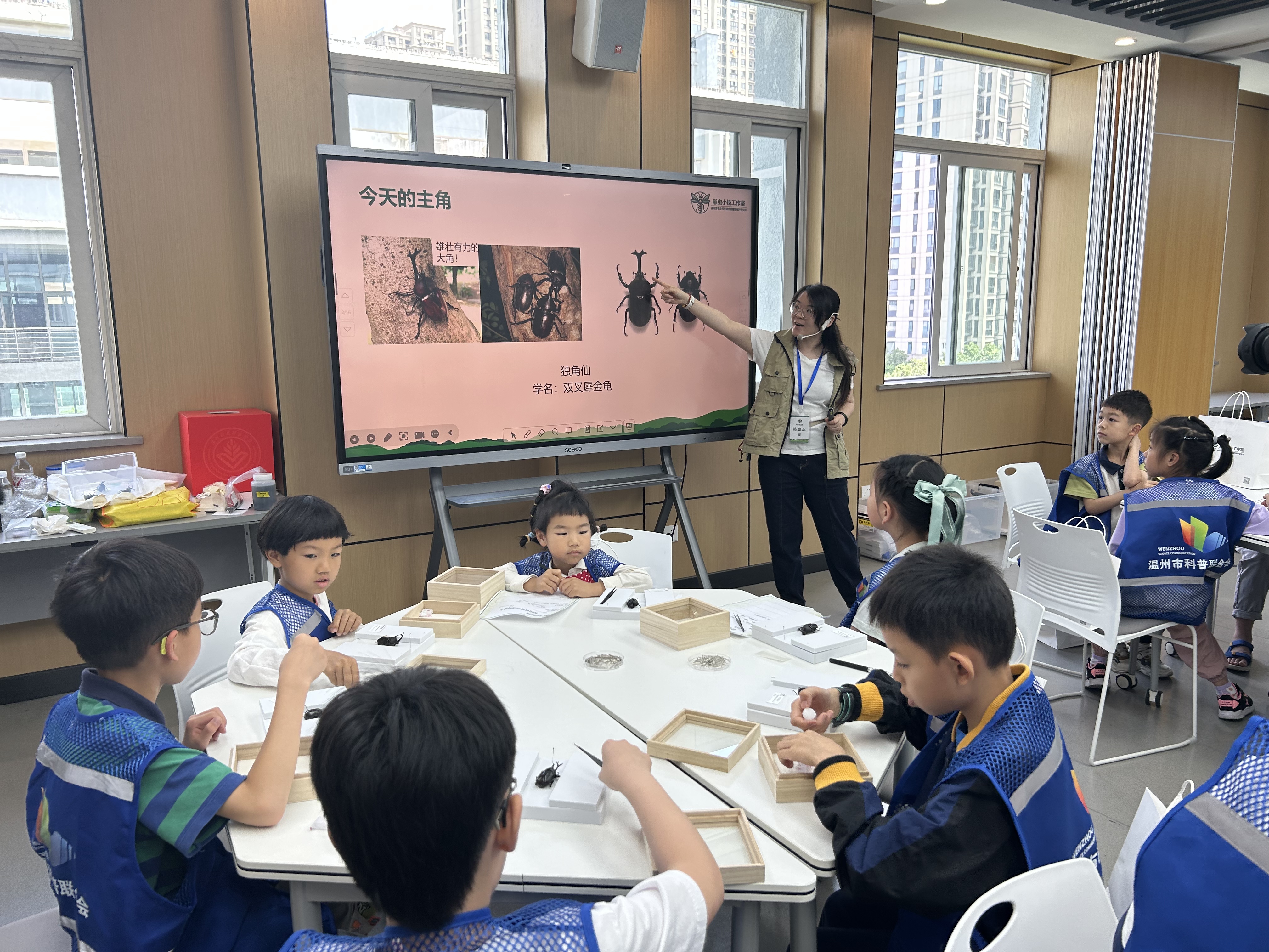 2025年5月24日上午在温州科技职业学院(温州市农业科学研究院)开展“科普开放日”公益第五期活动,以“走进昆虫世界”为主题。农业与生物技术学院植物保护研究所所长闫博士亲自带领孩子们走进五彩斑斓的昆虫世界。