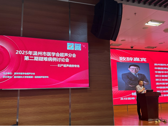 为提高温州市各医院超声诊断水平,培养中青年超声医生诊断思路,推进超声技术在临床中的应用与发展,温州市医学会超声医学分会计划每年分四期举办疑难病例讨论会。继第一期腹部与介入相关疑难病例讨论会成功举办后,2025年8月24日下午,由温州医科大学附属第一医院承办的第二期(妇产超声疑难病例专场)讨论会在超声医学分会主任委员杨琰教授的开幕辞中如期举行。本次会议聚焦妇产超声领域的疑难与前沿,由温医一院超声科管丽洁教授主持,吸引了全市各级医疗单位的积极参与。
