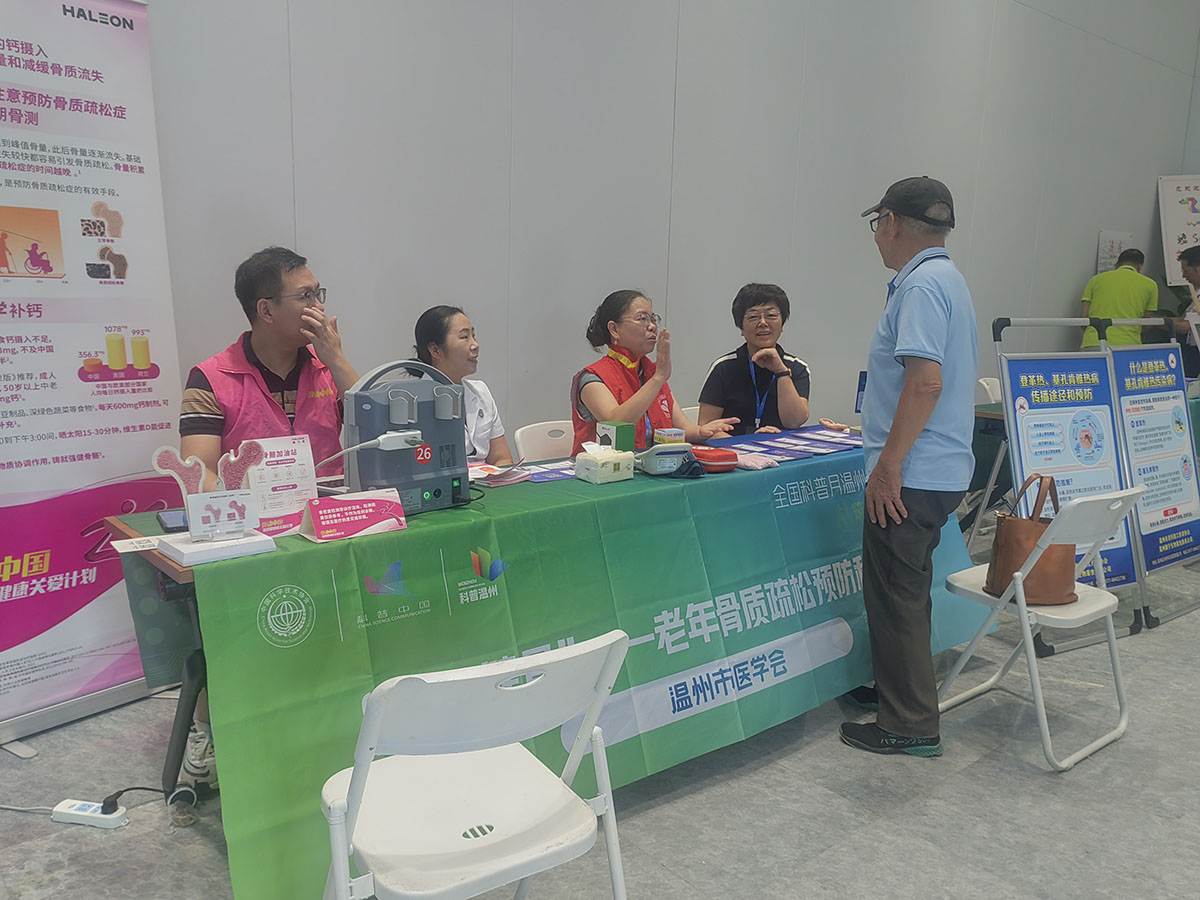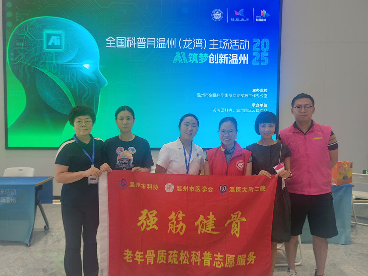 2025年8月30日,“AI筑梦 创新温州”全国首届科普月温州(龙湾)主场活动在温州国际云软件谷隆重开幕。学会积极响应“提高全民科学素质,夯实科技强国基础”的主题,精心组织“强筋健骨——老年骨质疏松科普服务”和“永嘉医派--传承百年医粹”二个项目亮相科普集市,受到市民热烈欢迎。
