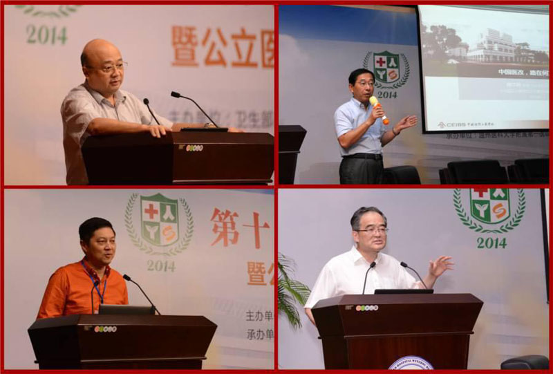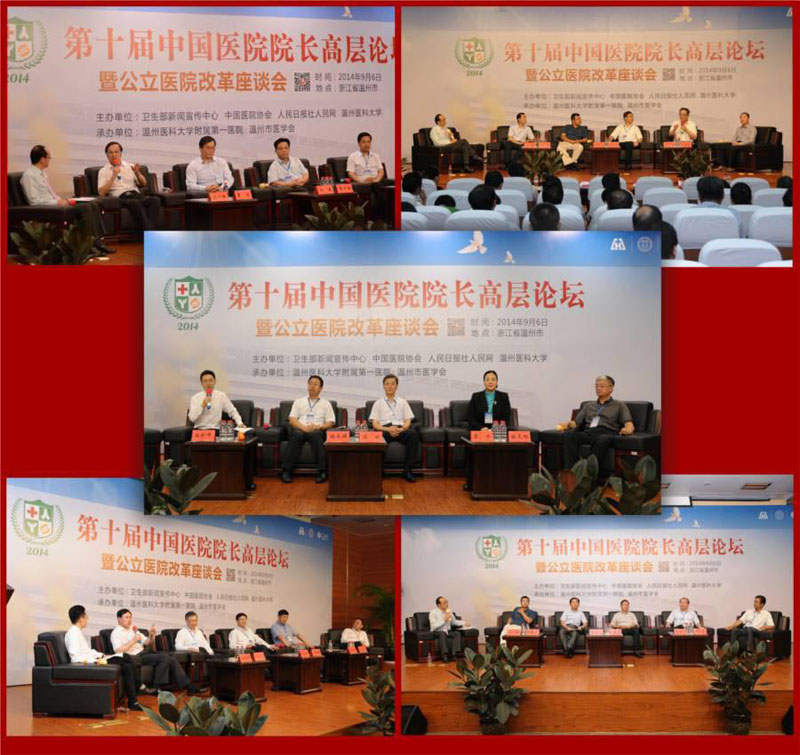 由中国医院协会副秘书长庄一强和人民日报高级记者白剑峰主持的5场圆桌论坛上,温州医科大学校长、温州市医学会会长瞿佳,南京医科大学党委书记陈琪,河南科技大学副校长雷方,北京安贞医院院长魏永祥,吉林省卫计委医政医管处处长张天旭,中国工程院院士、浙大医学院附属第一医院院长郑树森,北京友谊医院理事长刘建、上海新华医院集团理事长徐卫国,郑州市卫生计生委主任、党委书记顾建钦,国家卫计委规划与信息司副司长张锋,广东省卫生计生委巡视员廖新波,山东省立医院集团院长秦成勇,温州医科大学党委副书记、附属第一医院院长、温州市医学会副会长陈肖鸣,深圳市罗湖区人民医院院长孙喜琢,北京大学第一医院院长刘玉村,北京大学第三医院书记金昌晓,北京大学首钢医院院长陈仲强,台州恩泽医疗集团主任陈海啸,北大纵横管理咨询集团咨询师王宏志,中欧国际工商学院教授蔡江南,温州市卫生局局长程锦国,江苏苏北人民医院院长王静成,山东临沂市人民医院前院长尹传贵等就“医院信息化新趋势、会诊社会资本办医、医联体运行模式探索、如何推进医师多点执业及如何建立分级诊疗制度”5个话题展开讨论。