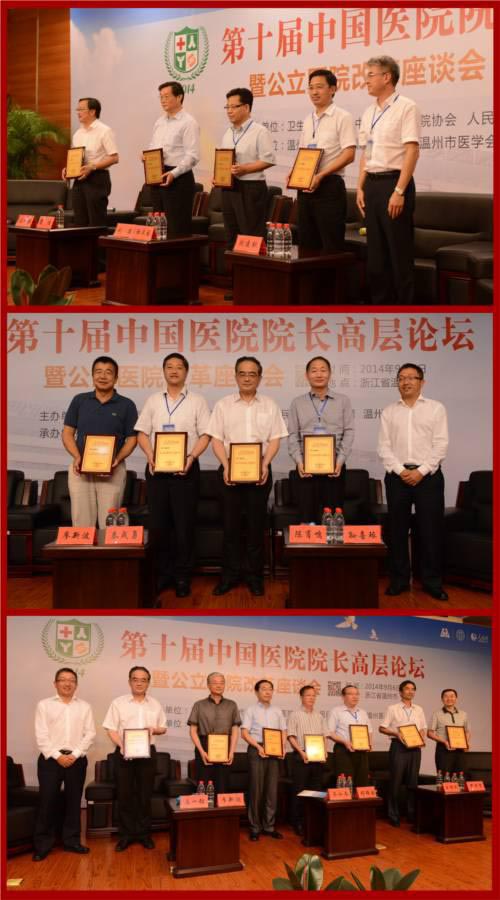 9月6日,由卫生部新闻宣传中心、中国医院协会、人民日报社人民网和温州医科大学共同主办,温州医科大学附属第一医院及温州市医学会承办的“2014第十届中国医院院长高层论坛暨公立医院改革座谈会”在温医附一院会议中心隆重召开。温医附一院在信息化智慧医疗及医疗联合体等方面取得的成绩得到了与会专家的充分肯定,获得“医院管理创新奖”;温州医科大学校长、温州市医学会会长瞿佳,温州医科大学党委副书记、温医附一院院长、温州市医学会副会长陈肖鸣获“医改创新贡献奖”。