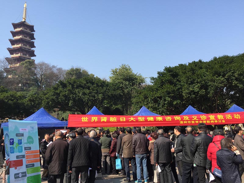 为提高大家对慢性肾脏病的重视、减少慢性肾脏病的危害,今年在温州市医学会肾脏病学分会组织温州地区各大医院肾内科举办了一系列健康咨询及义诊宣教活动。