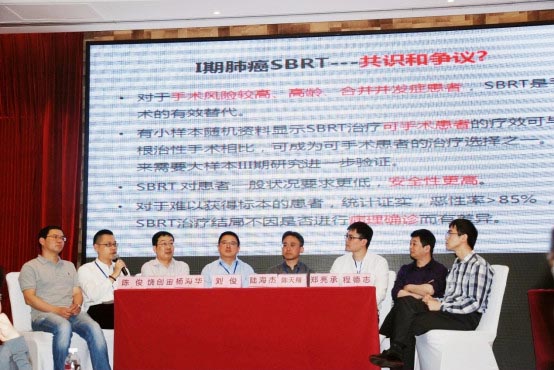 来自北京、广州、上海、山东、浙江等150余位中外放疗专家、学者参加论坛。王绿化教授和Fengming Kong教授分别对“精准医疗时代的肺癌放疗思路”和“早期肺癌的立体定向放射治疗(SBRT)技术”发表了自己的见解;邓小武教授阐述SBRT的最新进展和最新技术,陈佳艺教授对“分子分型下乳腺癌的精准放疗”发表自己的看法。热点讨论环节,谢聪颖主任就早期肺癌手术和SBRT的争议和共识做了引导发言,她认为,SBRT并非为取代手术而生,而是与手术互为补充,和谐共存。来自全国的放疗专家和胸外科专家在汇总临床研究数据的基础上联系临床实践中的经验,针对早期非小细胞肺癌的手术治疗和立体定向放射治疗的优缺点逐一展开讨论,各抒己见。来自上海胸科医院的蔡旭伟教授对“EGFR突变阳性肺癌脑转移治疗”进行了引导发言,与会专家对此话题的一些热点问题也进行了激烈地讨论。