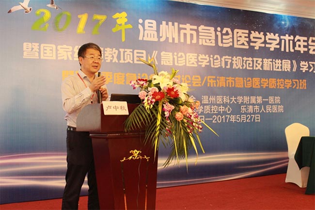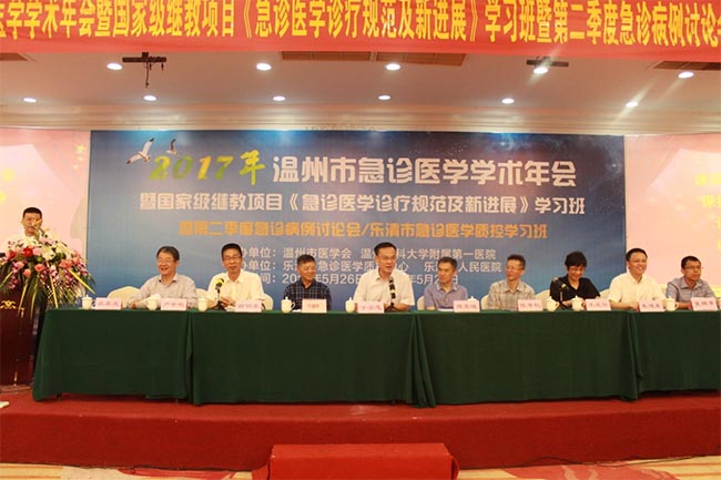 2017.05.26至05.27由温州市医学会,温州医科大学附属第一医院主办,乐清市急诊医学质控中心、乐清市人民医院协办的2017年温州市急诊医学学术年会暨国家级继续教育项目《急诊医学诊疗规范及新进展》学习班暨第二季度急诊病例讨论会/乐清市急诊医学质控学习班在温州乐清举行。