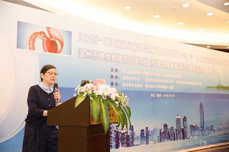 2018年7月29日,由浙江省消化病学分会胃肠动力学组、浙江省消化心身联盟主办、温州市医学会、温州市医学会消化病学分会、温州市消化病学胃肠动力学组协办,温州市中心医院、温州医科大学附属第一医院承办的“2018浙江省消化病学分会胃肠动力学组学术会议暨第二届瓯江消化心身高峰论坛,温州市继续教育项目学习班《功能性胃肠病消化心身疾病诊治进展》”在温州胜利召开。浙江省胃肠动力学组全体委员和温州市胃肠动力学组全体委员以及来自杭州、宁波、金华、义乌、台州、丽水、舟山等周边城市的专家及温州地区各医院的消化内科及相关专业的医务人员近400人参加了此次盛会。温州市医学会王爱华主任、温州医科大学附属第一医院党委副书记金嵘出席了本次会议。