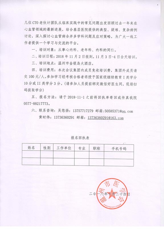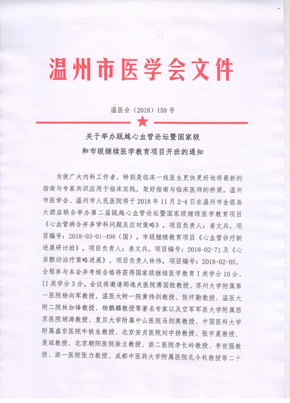 关于举办瓯越心血管论坛暨国家级和市级继续医学教育项目开班的通知