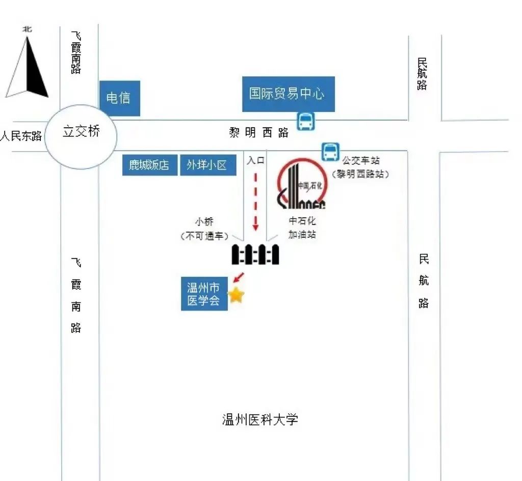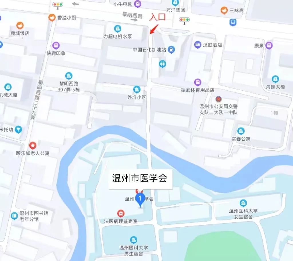 温州医科大学北门(由黎明西路中石化加油站旁,黎明西路二百六十三弄进入,经外垟小区)。注:此出入口仅限行人通行,车辆请停放至周边停车场。